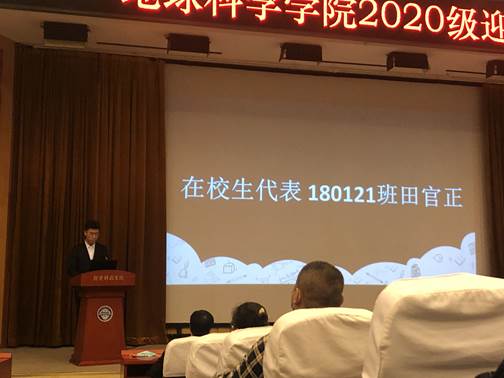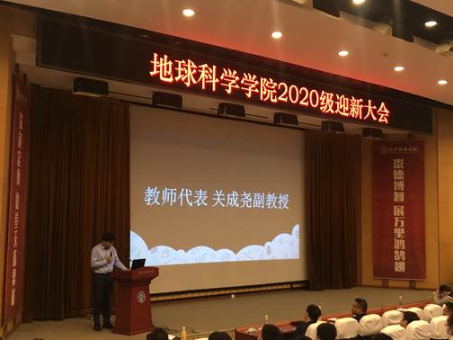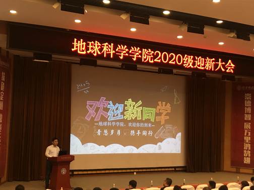 大会在嘹亮的国歌声中开幕,与会的学院领导、学科带头人、教授、各教研室主任和教师代表先后亮相,展现了世界杯官网雄厚的师资力量和良好的教师风采。会上,教师代表关成尧副教授首先发言,引经据典,对投身地学的新鲜血液表示欢迎并给予殷殷希望。优秀校友代表郭明明风趣幽默的辞藻、令人羡慕的学生履历,燃起了学生们奋勇上进的激情,将大会推向了高潮。在校生代表田官正和新生代表冯天杰依次做了热情洋溢的发言后,学院院长姜纪沂教授做了语重心长,情真意切的致辞。
