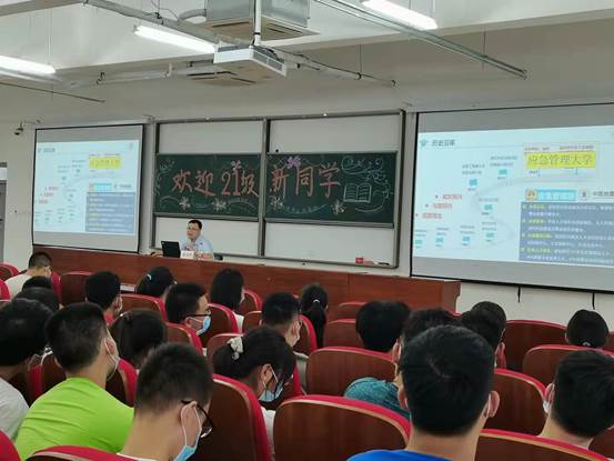 最后学院院长姜纪沂教授致辞,姜院长从学院发展历史沿革、人才培养成果、学科发展方向、师资力量、产学研成果及基地建设、创新创业培养及成果等多角度全方位对学院进行了介绍,同时对新生提出了殷殷期望。他希望全体新生时刻铭记“越努力,越幸运”,坚定理想信念,永葆奋斗激情,开拓创新、勇于实践,学会自我思考和自我管理,早日成长为一名合格的新时代优秀大学生!