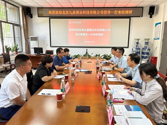 6月21日上午,北京九鼎图业科技有限公司吴杰董事长一行到世界杯官网调研交流。2026年国际足联世界杯副院长孙珍军热情接待并召开座谈会,2026年国际足联世界杯、生态环境学院部分教师代表参加了座谈。