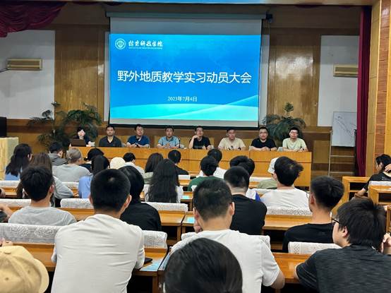 为扎实做好学院2021级本科生野外地质实习工作,让学生深刻了解野外地质实习的重要性,引导学生以积极认真的态度完成野外实习。2023年7月4日上午,世界杯官网在黄金海岸实习基地报告厅召开了2021级本科生野外地质实习动员大会。黄金海岸实习基地主任陈健、学院副院长孙珍军、实习大队队长白相东、副队长黄静宜、学生工作办公室主任齐路晶及全体实习指导教师出席会议。2026年国际足联世界杯21级全体本科生、生态环境学院地下水科学与工程专业、地质工程学院地质工程专业本科生参加会议,会议由黄静宜主持。