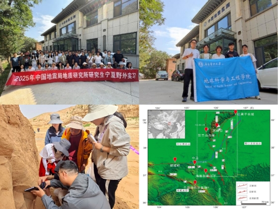 实习团队先后考察了银川(贺兰山东、西麓断裂带)、中卫(中卫-同心断裂)、海原(海原断裂带)及固原(六盘山东麓断裂)等多个典型构造区域,带领研究生系统学习了不同类型活动断裂的构造特征与地貌表现。中国地震局地质研究所的周永胜、俞晶星、熊建国、李新男、吕丽星等专家,以及宁夏地震局的雷启云老师承担了主要教学任务。陶亚玲老师全程协调对接,保障了实习各环节顺利推进。
