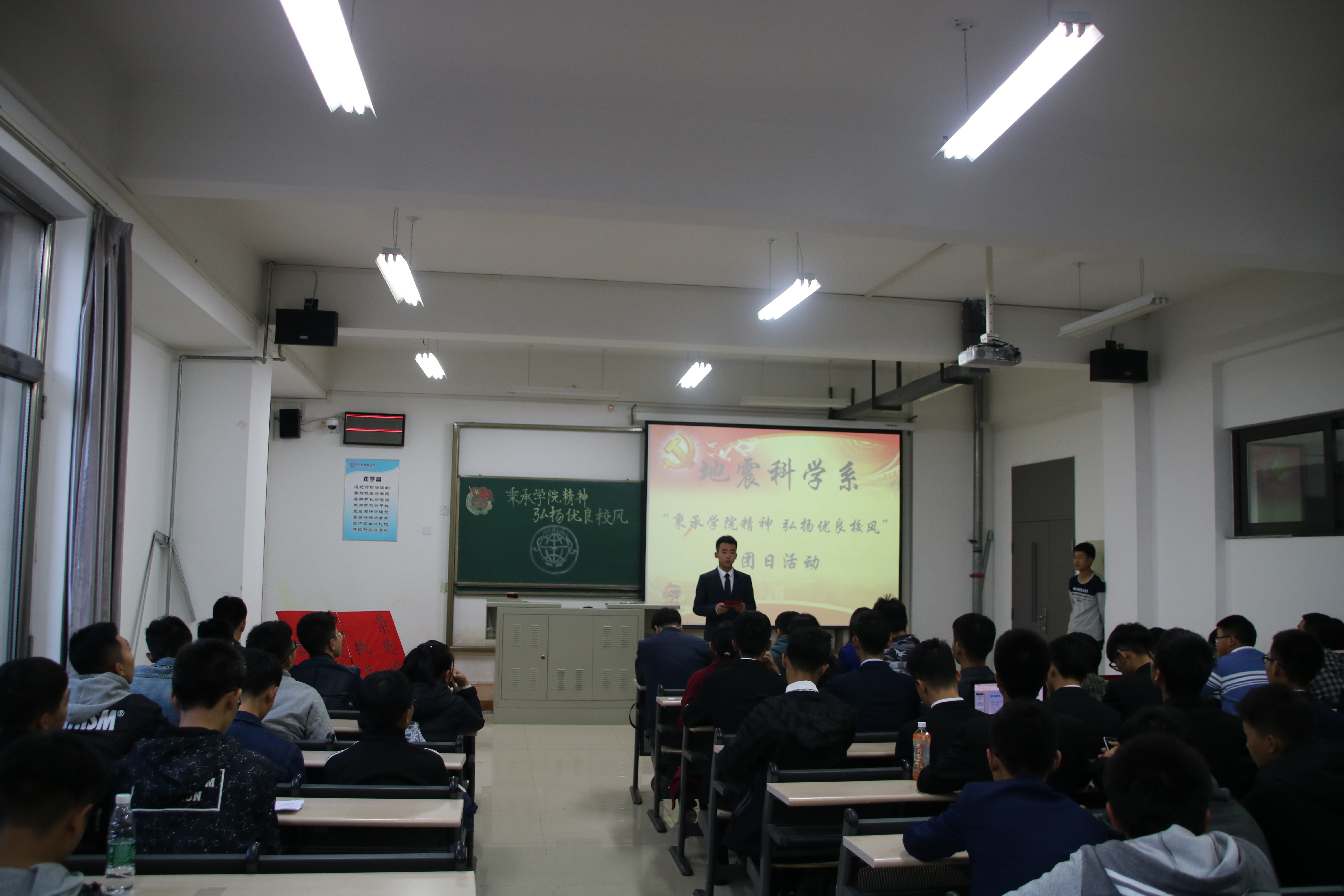 近期,地震科学系结合实际,精心设计,按照了解校风、认同校风、践行校风“三部曲”,组织开展了一系列“弘扬优良校风”特色主题教育活动,将学院“仁爱、严谨、俭朴、担当”的校风精神通过不同形式的载体渗透、烙印到同学们的心中,融入、转化到同学们的自觉践行中。