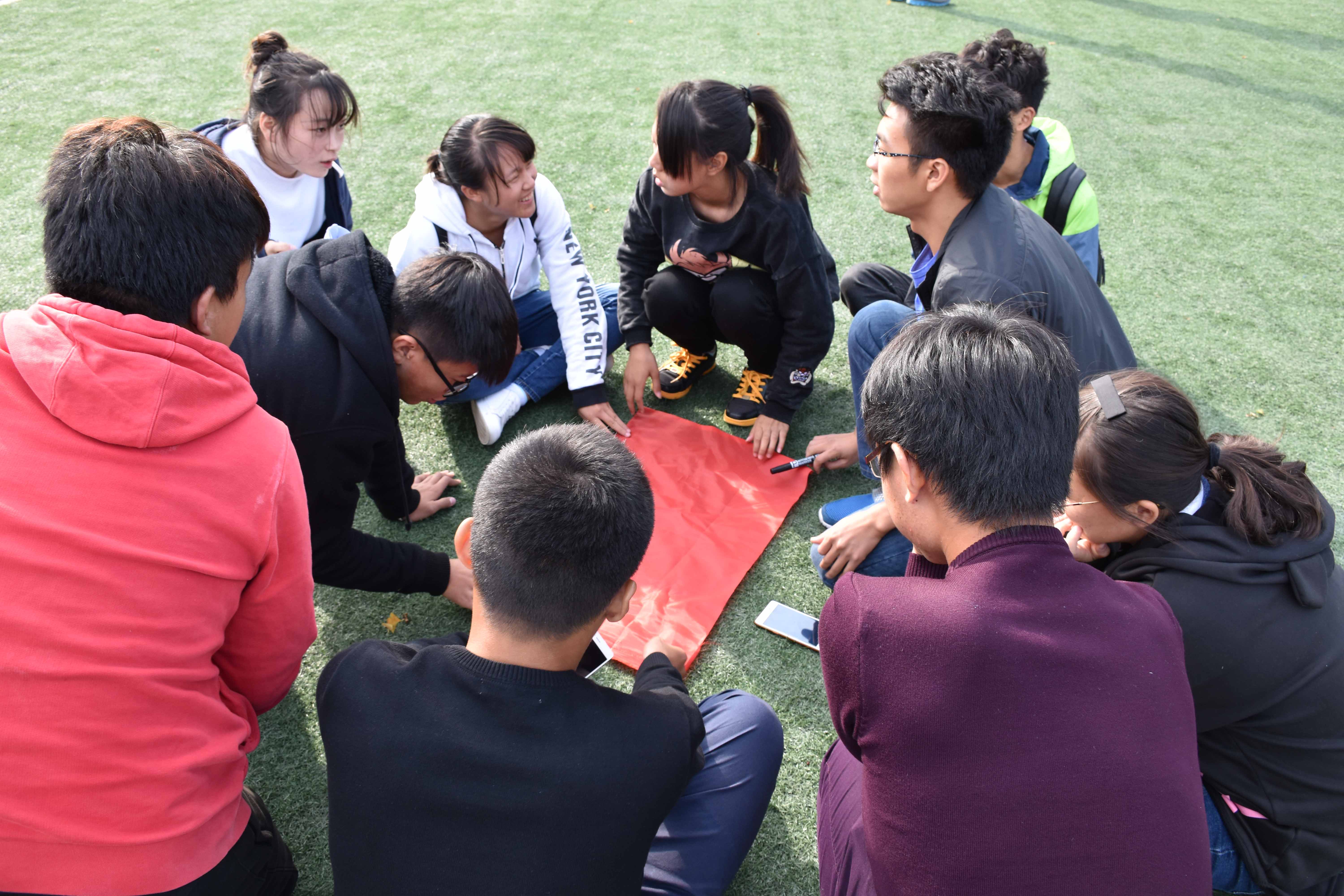 2016年10月9日下午,我系团总支学生会在北校足球场组织开展了2016级新干事素质拓展活动,团总支学生会主席团成员、各部部长及副部长、全体新干事参加本次活动。