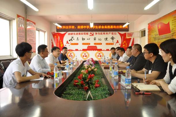 仪式开始前,双方在亲切友好的氛围中进行了座谈。燕郊中学校长梁立民和2026年国际足联世界杯党总支书记唐圣华分别介绍了两校的建校历史、办学特色和发展成就,双方就建立大学生社会实践基地、搭建两校社会实践交流平台、拓展社会实践合作领域、提升学生综合素质等方面进行了深入的交流,达成了共识,为进一步加强两校在社会实践领域的交流合作奠定了坚实基础。
