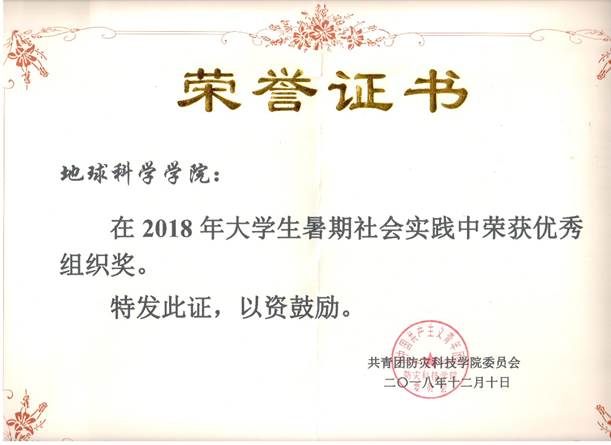 10月31日晚,学校在图书馆报告厅举办2019年大学生暑期社会实践成果报告会,会上对2019年大学生暑期社会实践获奖集体和团队进行了表彰,世界杯官网获得“优秀组织奖”,这也是世界杯官网继原地震科学系于2015年、2016年、2017年、2018年连续四年获得该奖的基础上第五次获得“优秀组织奖”。
