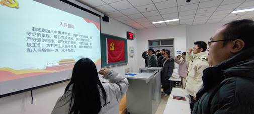 大会开始前,首先由支部正式党员对党支部书记进行了2023年度评议。随后,由李珊同志宣布大会开始,会议讨论了黄龙灏、王鹤羽等10名预备党员同志按期转为正式党员事宜,待转正的预备党员依次作转正答辩,并由支部正式党员进行投票表决。裴娅茜同志宣布投票结果,并宣读了支部关于同意接收黄龙灏、王鹤羽等10名预备党员同志按期转为正式党员的决议,随后李珊同志带领全体党员重温入党誓词。