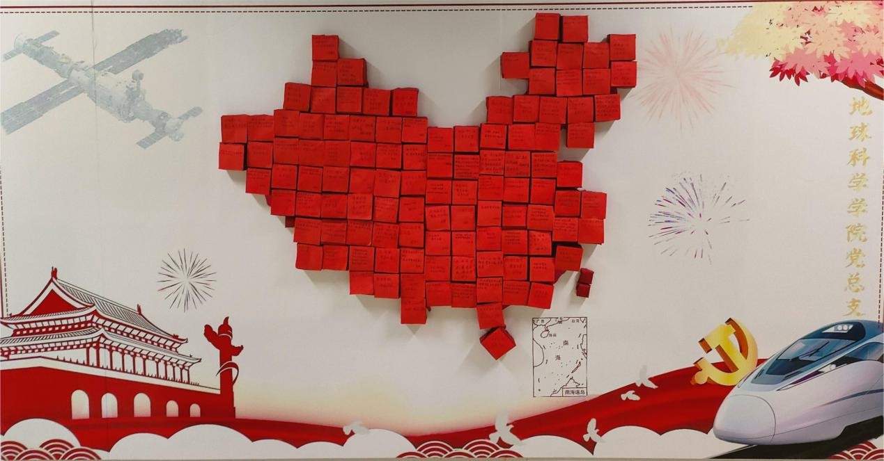 随后,大家将祝福语拼接成一幅中国地图,大家纷纷表示:“地图虽小,‘一点’都不能错。中国虽大,‘一’点也不能少”。