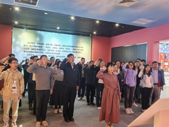参观学习最后,全体党员面向党旗庄严宣誓,重温入党誓词。铿锵誓言中,进一步坚定“严守纪律、忠诚担当”的政治信念。