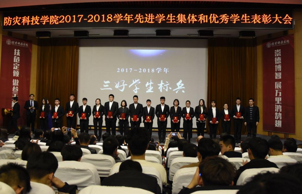 会上,学生工作处处长张伟宣读了《防灾科技学院关于表彰2017-2018学年先进学生集体和优秀学生个人的决定》,通报了2017-2018学年国家奖学金、国家励志奖学金和学校奖学金评选情况。