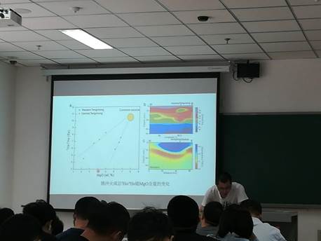 刘少林研究员从基于波动方程的层析成像方法、基于程函方程的层析成像方法及应用等几个方面详细介绍了伴随远震成像的算法原理,并重点介绍了波动方程伴随层析成像和传统射线走时层析成像的不足,以华北岩石圈远震波形成像为例阐释了层析成像方法的应用。会后,刘少林研究员与在场师生就科学前沿问题进行了交流与探讨。