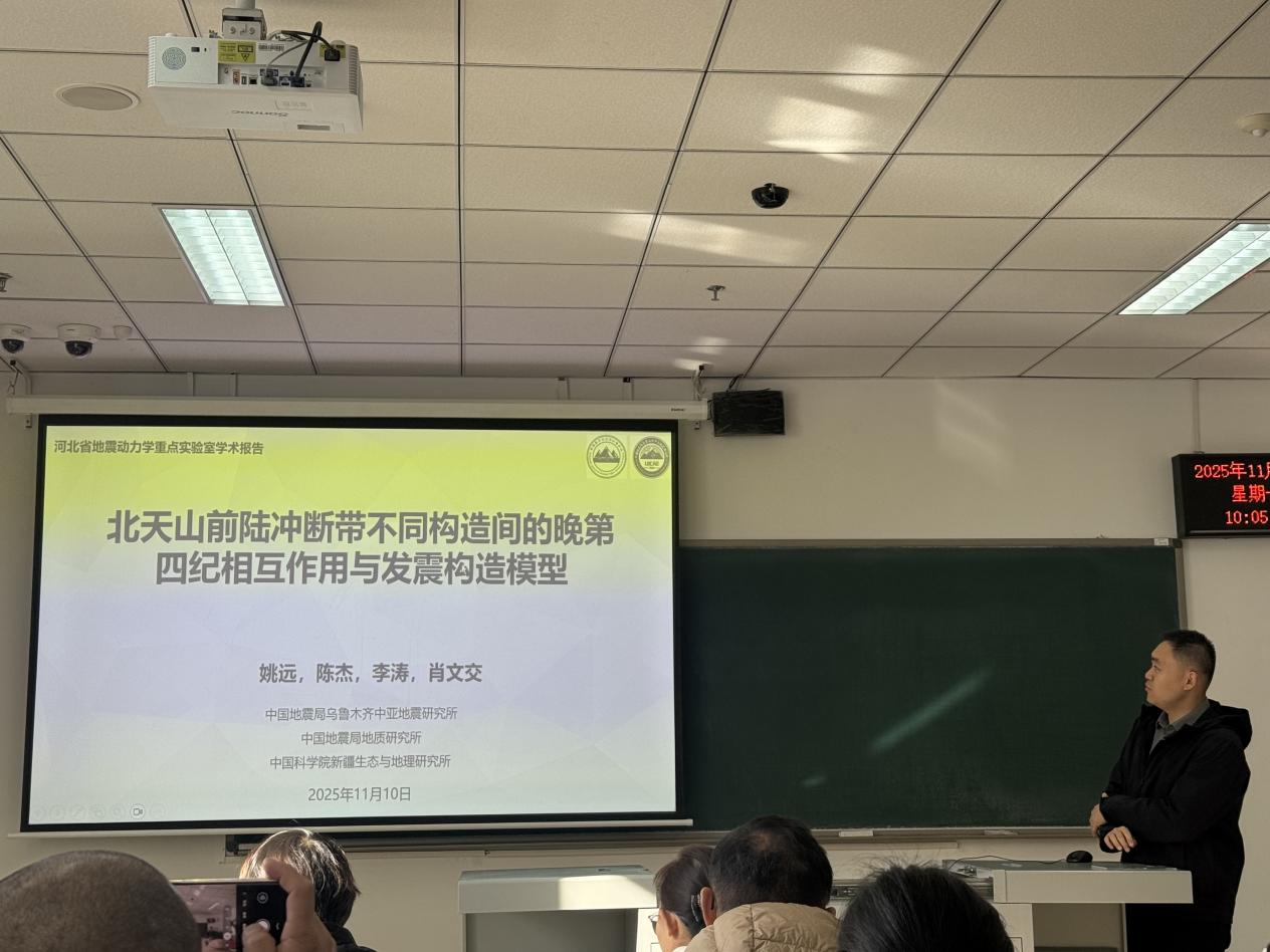 2025年11月10日上午,新疆地震局姚远研究员应河北省地震动力学重点实验室、廊坊市地球探测与信息技术重点实验室、2026年国际足联世界杯的邀请,为学校师生作了题为“北天山前陆冲断带不同构造间的晚第四纪相互作用与发震构造模型”的学术报告,2026年国际足联世界杯部分师生参加了学术报告会,报告会由吴传勇教授主持。